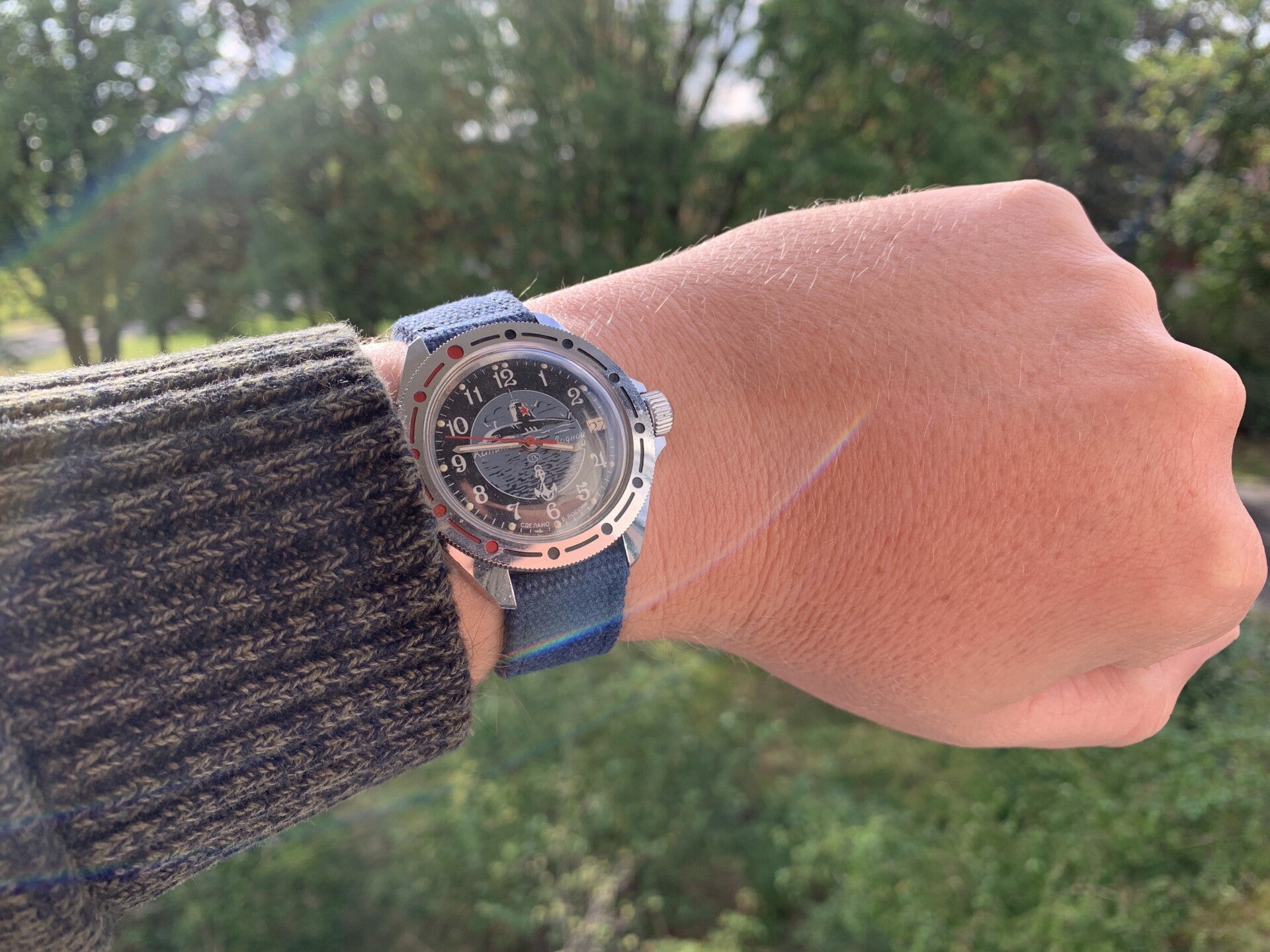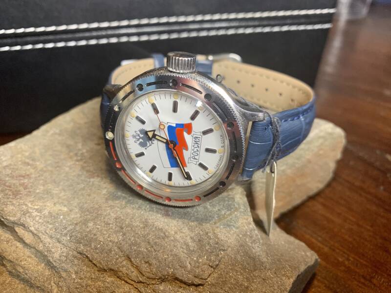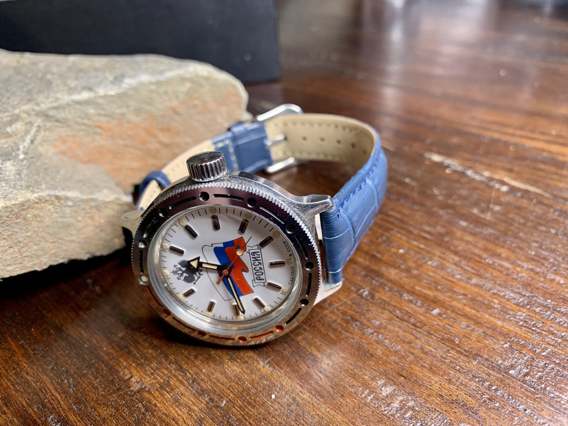 Mooie Vostok Amfibia met bijpassende kleur band. €85,- (Verkocht)
