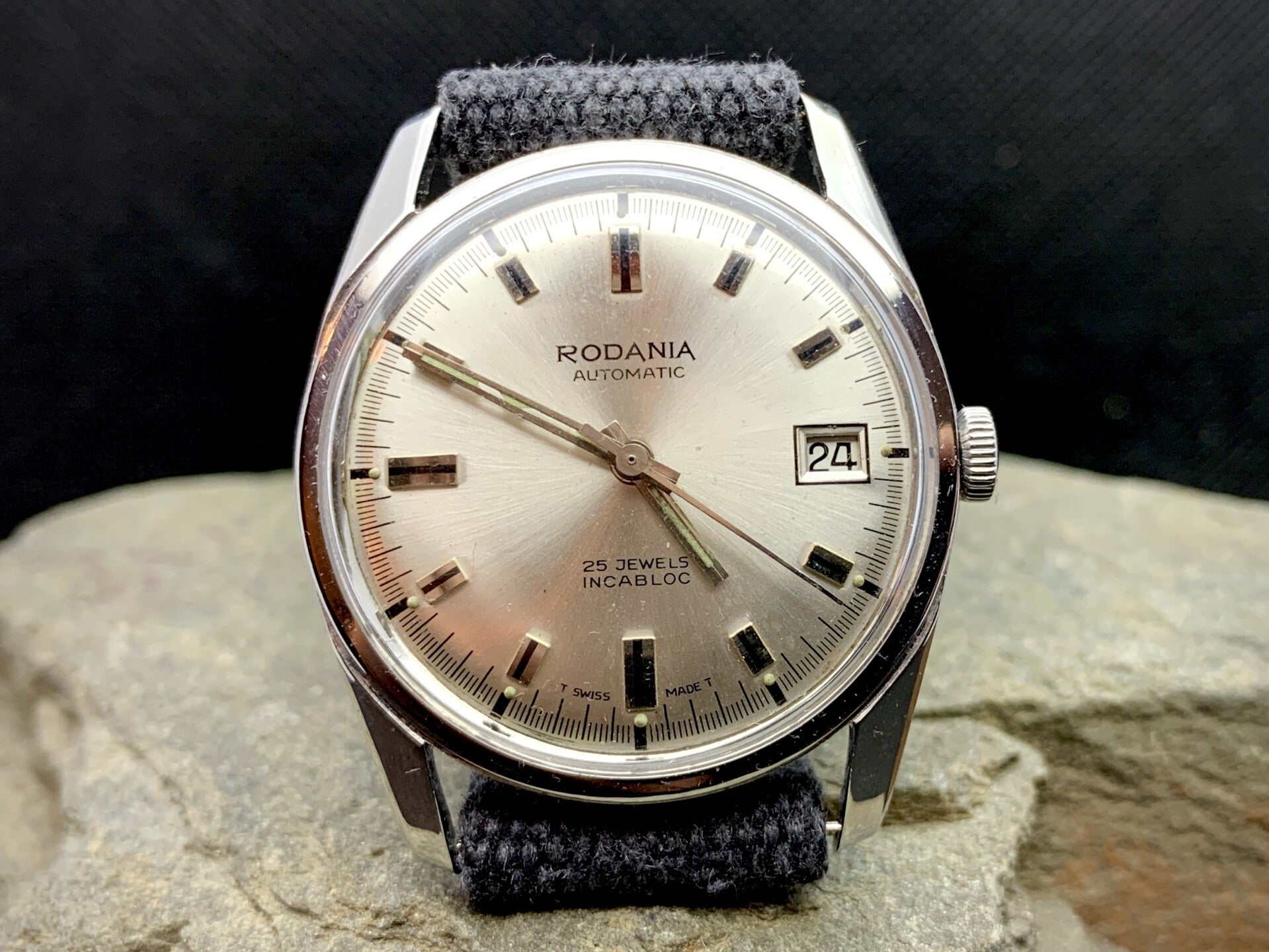 Rodania 34mm Automatisch herenhorloge, 25 juwels incabloc op een antraciet kanoenen band €150,-